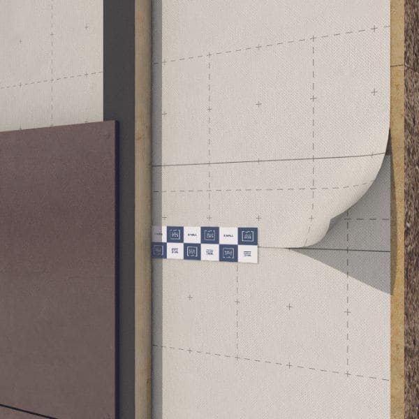 Koostis/ kihid: (1) PE-kile, (2) liim, (3) tugevdav polüestervõrk, (4) akrüüldispersioon ja (5) eemaldatav lainer.
